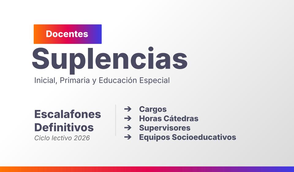 Se encuentran publicados los escalafones definitivos de Suplencias de horas y cargos, correspondientes a los niveles Inicial, Primario y modalidad Especial.