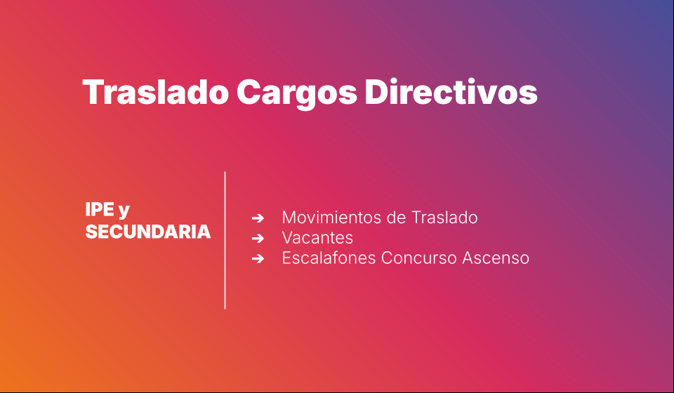 Dando continuidad al proceso de traslado de Cargos Directivos, se informa que se encuentran disponibles en Mi Legajo los movimientos otorgados.
